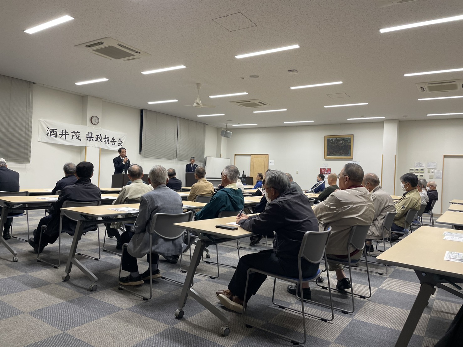 会では、県議会での一般質問などの発言内容や、日頃考えていることなどについて説明しました。主な内容は、次のとおりです。