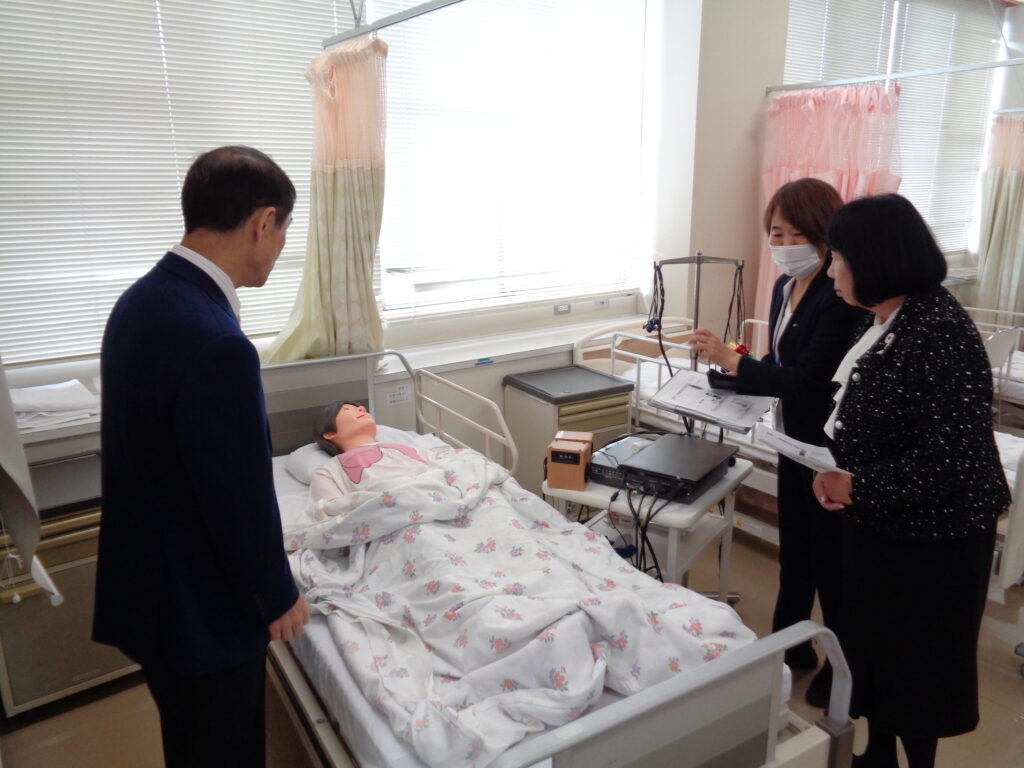 監査では、最初に校長の案内で施設を視察し、その後学校の業務について監査を行いました(写真は演習室にあるフィジカルアセスメントモデル)。